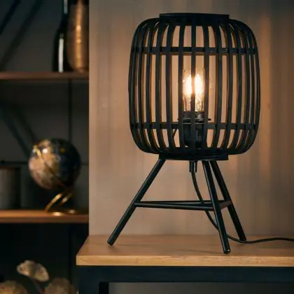 Brilliant Holzrow Tischlampe Metall Bambus Schwarz Holz | Geeignet für 1x E27