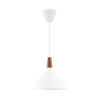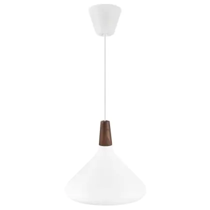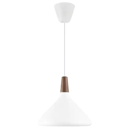 Die Nordlux Pendelleuchte aus der Modellreihe Nori zeichnet sich durch ein modernes Design und einen schicken Materialmix aus. Der Lampenschirm besteht aus Metall. Das Markenzeichen der Modellserie ist die Holzspitze in geöltem Nussbaum. Hinweis: Die Leuchte kommt ohne Leuchtmittel daher - passende E27 LED-Lampen finden Sie jedoch in unserem Shop.