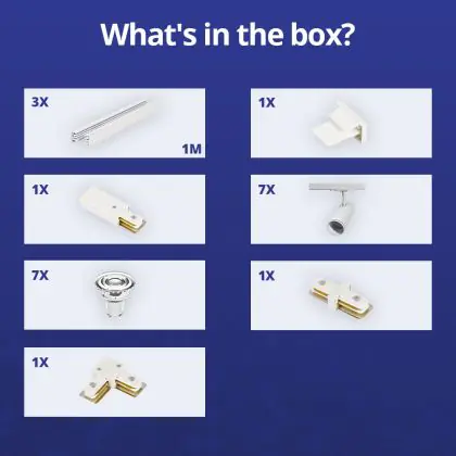| Herstellername | Complete L shaped 1-Phase Track Set White incl. 7x Spot fixture + GU10 2700K 3W Dim – 1 x 2 meters i | |