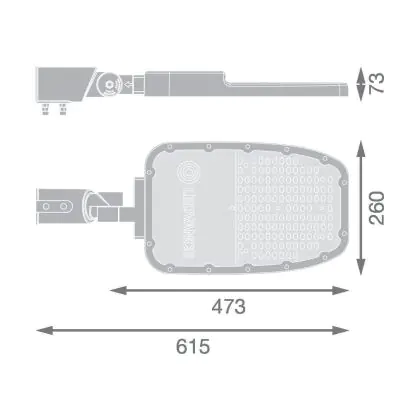 Beschreibung Ledvance Led-Straßenbeleuchtung Area Large RV35ST Aluminium Grau 90W 12150lm 155X69D - 740 Kaltweiß | IP66 - Asymmetrisch