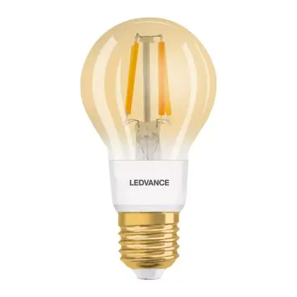 Die Ledvance Smart+ Zigbee E27 Birne Classic Fadenlampe Gold 6W 680lm - 824 Extra Warmweiß | Dimmbar - Ersatz für 50W ist eine effiziente E27 LED-Lampe mit Retrodesign und der perfekte Ersatz für Ihre konventionellen 55W Lampen mit E27. Zudem strahlt sie Licht in der Farbtemperatur 2400K - Extra Warmweiß aus und punktet durch eine lange Lebensdauer.