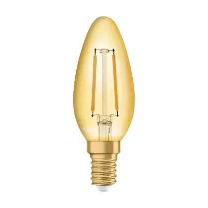 Die Ledvance Vintage 1906 LED E14 Kerze Gold 2.5W 220lm - 824 Extra Warmweiß | Ersatz für 25W ist eine effiziente E14 LED-Lampe mit Retrodesign und der perfekte Ersatz für Ihre konventionellen 25W Lampen mit E14. Zudem strahlt sie Licht in der Farbtemperatur 2400K - Extra Warmweiß aus und punktet durch eine lange Lebensdauer.