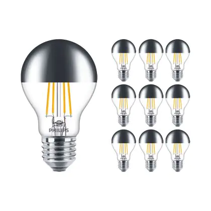 Die Mehrfachpackung 10x Philips Classic LED Glühbirne E27 Birne Spiegel 7.2W 650lm - 827 Extra Warmweiß | Dimmbar - Ersatz für 60W ist eine effiziente E27 LED-Lampe und der perfekte Ersatz für Ihre konventionellen 50W Lampen mit E27-Sockel. Zudem strahlt sie Licht in der Farbtemperatur 2700K - Extra Warmweiß aus und punktet durch eine lange Lebensdauer.