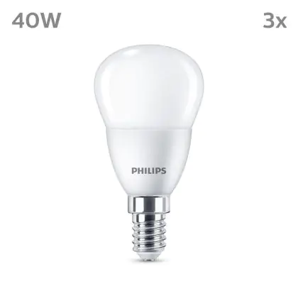 Die Mehrfachpackung 3x Philips Glühbirne LED E14 Birne Matt 5W 470lm - 827 Extra Warmweiß ist eine effiziente E14 LED-Lampe und der perfekte Ersatz für Ihre konventionellen W Lampen mit E14-Sockel. Zudem strahlt sie Licht in der Farbtemperatur 2700K - Extra Warmweiß aus und punktet durch eine lange Lebensdauer.
