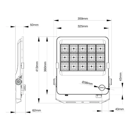 | Herstellername | Noxion LED Floodlight ProBeam V2.0 130W 17300lm 60D - 830-840-865 CCT | IP66 - Asymmetrical Type II | |