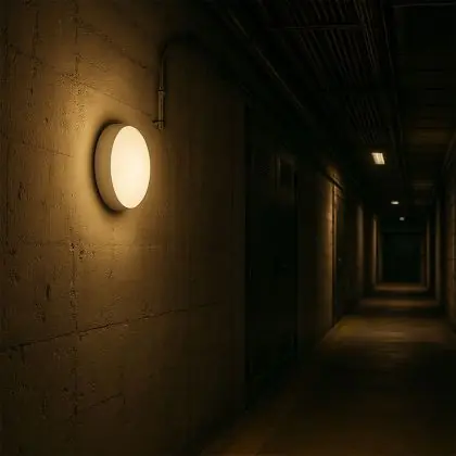 Beleuchtung, die mit einer eingebauten Notbeleuchtung (Batterie) daherkommt, spendet für eine gewisse Zeit weiter Licht, wenn die Stromversorgung unterbrochen wurde. |