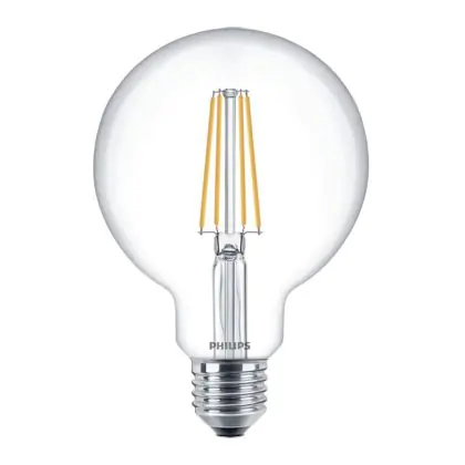 Die Philips Corepro LED Globe E27 Fadenlampe Klar 95mm 7W 806lm - 827 Extra Warmweiß | Ersatz Für 60W ist eine effiziente E27 LED-Lampe mit Retrodesign und der perfekte Ersatz für Ihre konventionellen 60W Lampen mit E27. Zudem strahlt sie Licht in der Farbtemperatur 2700K - Extra Warmweiß aus und punktet durch eine lange Lebensdauer.