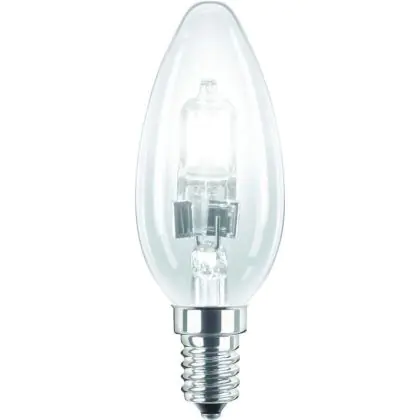 Philips EcoClassic Candle B35 sind kerzenförmige Halogenlampen, die Ihre alten Glühlampen perfekt ersetzen. Diese Lampen bieten Ihnen ein hochwertiges Licht und sparen dabei im Vergleich zu Ihren alten Glühlampen gleichzeitig Energie. Die Lampen sind mit einem E14 Lampensockel ausgestattet und dadurch leicht zu installieren. Die durchschnittliche Lebensdauer der Philips EcoClassic 42W E14 230V B35 CL beträgt 2000 Stunden.