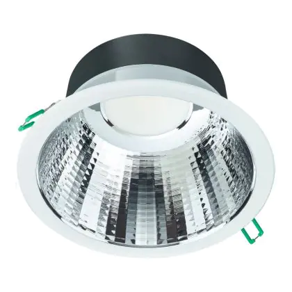 Bei dem Produkt “Philips LED Downlight Coreline DN142B Aluminium Weiß 19.2W 2300lm 60D - 830 Warmweiß | Ausschnitt 200mm - IP54 - UGR” handelt es sich um einen effizienten LED-Deckenspot, welcher Licht in der Farbtemperatur 3000K - Warmweiß ausstrahlt und durch eine lange Lebensdauer punktet. Das Downlight ist recycelbar und umweltfreundlich, denn es enthält kein Quecksilber.